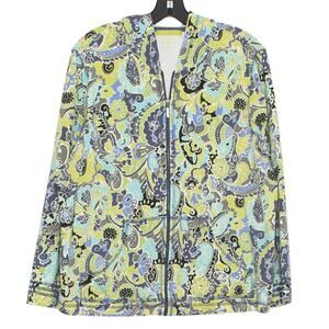 Sigrid Olsen Jacket Floral Y2K Cottagecore Boho Abstract Artsy Full Zip Green 1X