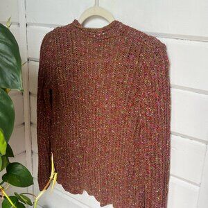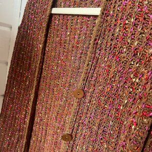 Rayon and nylon materials. Retro/y2k brown and pink sweater. Size small. Buttons up. Buttons look like Tiger Eye.