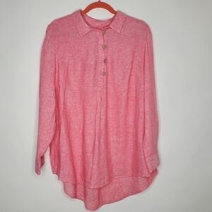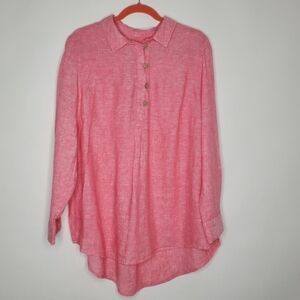 Sigrid Olsen LINEN Tunic Size 1X Long Sleeve Pink Popover Casual High-Low Hem Shirt.
