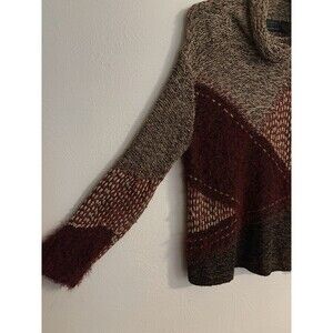 This Sigrid Olsen hand-knitted sweater is a unique addition to any wardrobe. The colorful cable-knit pattern and round neckline make it perfect for a casual occasion in the fall or winter season. The sweater is made of a blend of silk, rayon, linen, ramie, cotton, acrylic, and other materials, making it comfortable and cozy to wear.
