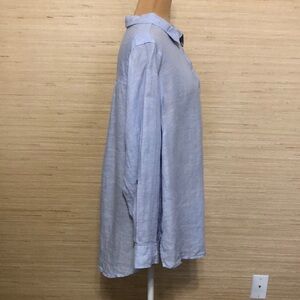 Sigrid Olsen Light Blue Linen Quarter Button-Up Lightweight Long Sleeve Top 1X