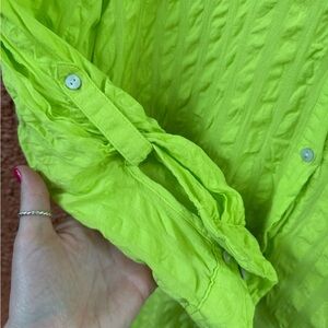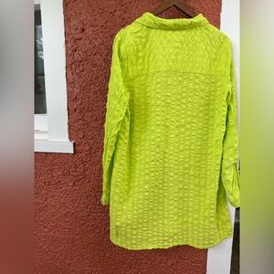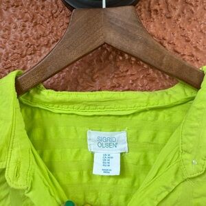Sigrid Olsen Lime Green 100% Cotton Roll Tab Button Up Cover Up Tunic Size M