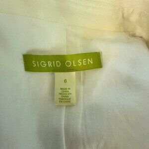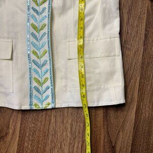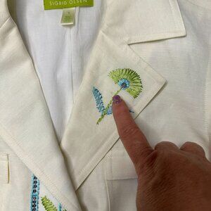 Sigrid Olsen Linen Blend Blazer Womens 6 Ivory Embroidered Floral Snap FLAW