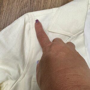 This Sigrid Olsen Linen Blend Blazer Jacket in size 6, features a stylish floral embroidery in an elegant ivory hue. Ideal for women who value both comfort and fashion. Note: The jacket has a flaw - several small spots that may come out if specifically treated (see pictures).