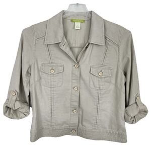Sigrid Olsen Linen Blend Jacket Women's Size 10 Beige Classic Trucker Coastal