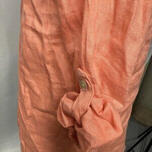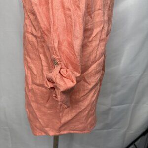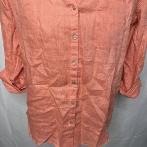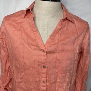 Sigrid Olsen Linen Button Down Tunic Top M Roll Tab Long Sleeves Pocket Orange