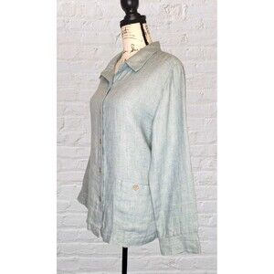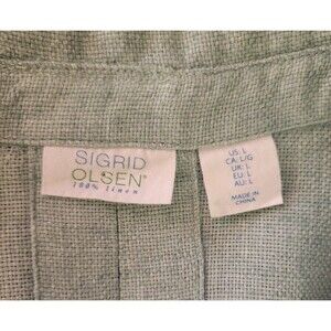 Sigrid Olsen Linen Button Front Boho Top Womens LG Sage Green Lagenlook Shirt