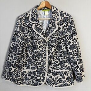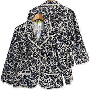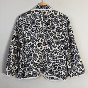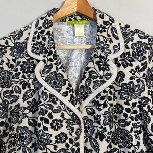 Sigrid Olsen Linen Floral Blazer Jacket Women's 10 Tan Black Career Suit Office