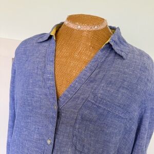 Sigrid Olsen Linen Shirt SM Blue Button Front Lagenlook Resort Coastal Chic