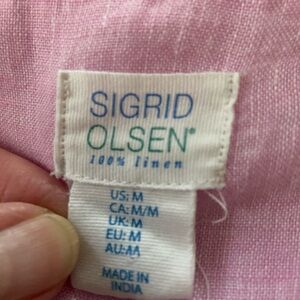 Sigrid Olsen Linen Top 3/4 Sleeve V Neck Collar Laces on the Sides Size Medium