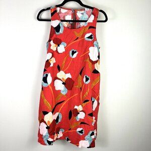 Sigrid Olsen Linen Trapeze Dress Orange Floral Tropical Island Vacation Beachy