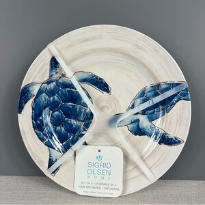 Sigrid Olsen Melamine Salad Plates Sea Turtles Blue Tan Coastal Set of 4 NEW