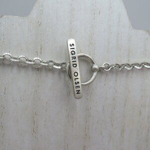 Sigrid Olsen Necklace Polished Tigers Eye Beads 20" Silver Tone Teardrop Pendant Preowned