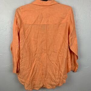 Sigrid Olsen Orange Linen Top Sizse 1X Roll Tab Sleeve V Neck Button Up Relaxed