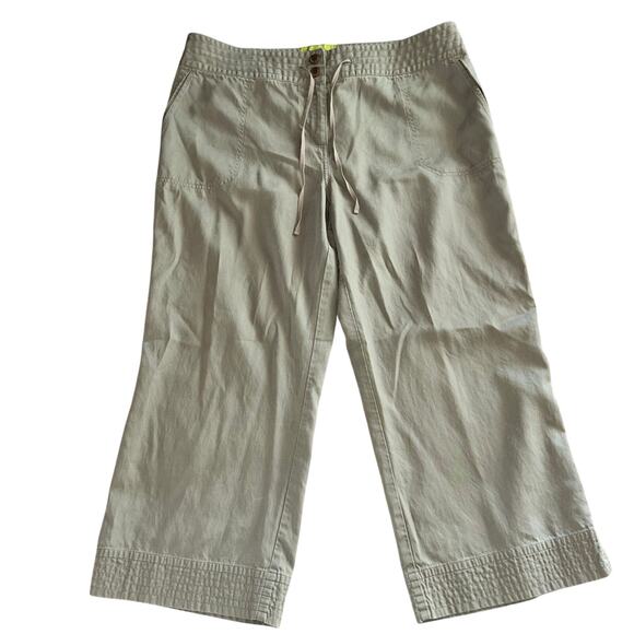 Sigrid Olsen Pants Womens Tan 100% Linen Blend Capri Front Tie Poet Crop 14 P