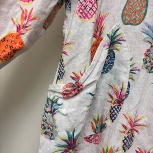 Amazing Sigrid Olsen Pineapple Tunic Top. Linen blend. Front pockets. Split neck.