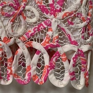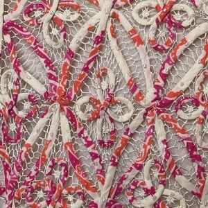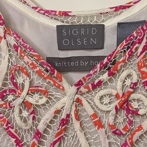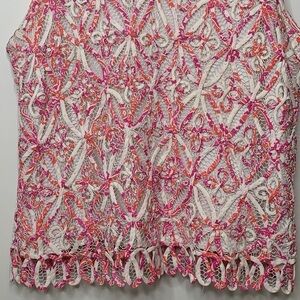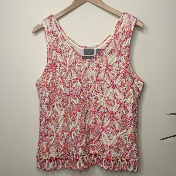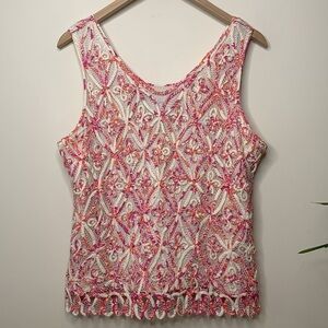 Sigrid Olsen | Pink White Silk Blend Lined Hand Knit Woven Beaded V Neck Camisole Top in size large.