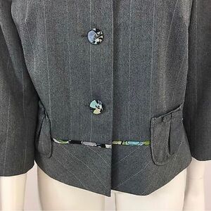 Sigrid Olsen Womens Gray Pinstripe Career Jacket Blazer Size 10