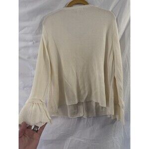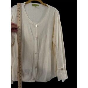 Sigrid Olsen Shell Button Up Flare Cuff Cardigan Sweater Ivory Size XL