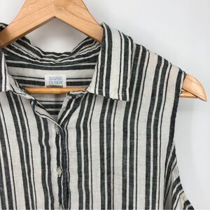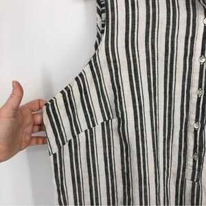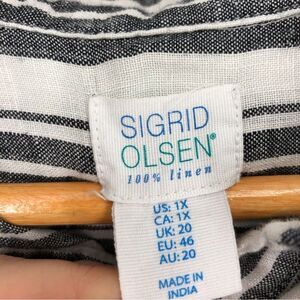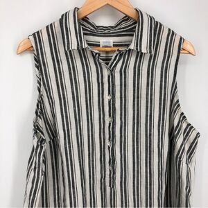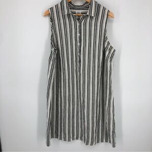 Sigrid Olsen Shirt Dress Womens 1X 100% Linen Henley Buttons Sleeveless Striped