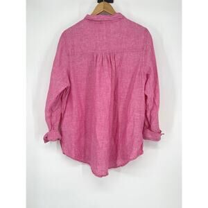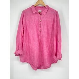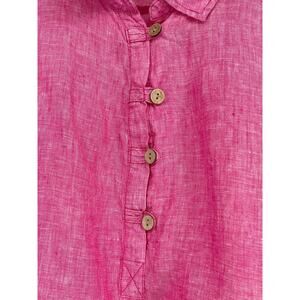 Sigrid Olsen Shirt Top Blouse Button Up Pink 100% Linen Roll Tab Sleeve Size 1X Beach Boho Vacation Resort. Measurements are approximate.