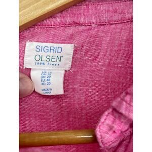 Sigrid Olsen Shirt Top Blouse Button Up Pink 100% Linen Roll Tab Sleeve Size 1X