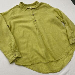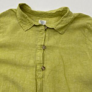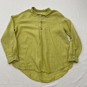 Sigrid Olsen Shirt Womens XL Green Linen Long Sleeve Button Pullover Casual Top