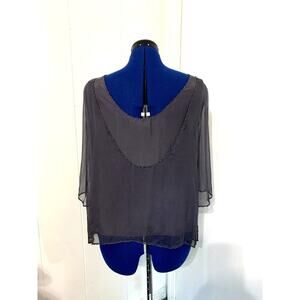 Sigrid Olsen Signature Blouse Small Gray Silk Flowey Beaded Artherial Feminine