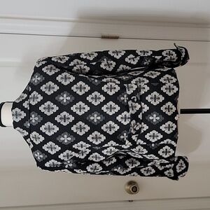 Sigrid Olsen Size 12 Black & Gray Floral Brocade Fitted Jacket Blazer, EUC