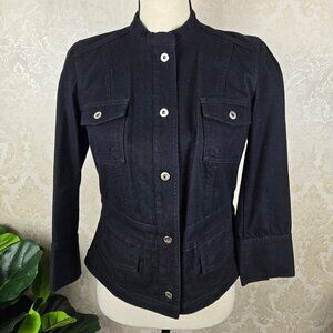 Sigrid Olsen Size 4 Black Zipper and Button Front Jacket 3/4 Sleeve Cotton