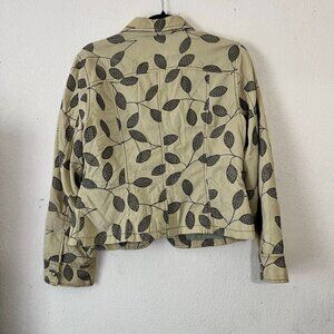 Sigrid Olsen Size 8P Embroidered Leaves Blazer Jacket Thin Corduroy Light Green
