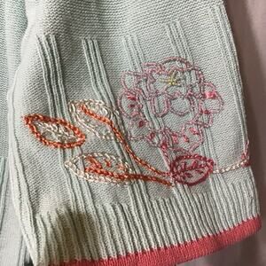 Sigrid Olsen Sport Seafoam Green and Coral, and Purple deatails with beading and embroidery. Button up Cardigan