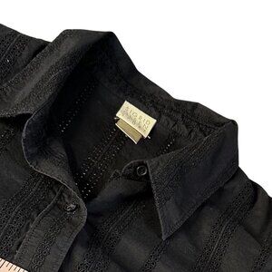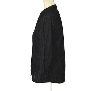 Sigrid Olsen Sport Eyelet Shirt Medium Black Button Up Cotton Blouse Feminine