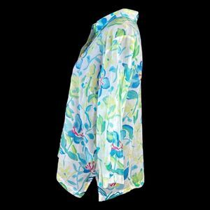 Sigrid Olsen Sport | Floral Cotton Button Down Lightweight | Size Petite Medium. This top is in excellent condition. It is made of 100% cotton and very lightweight. Beautiful floral watercolor design. Perfect for warm weather. Wear a cami or crop underneath.