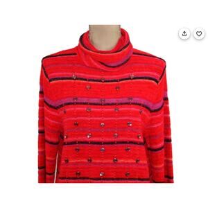 Sigrid Olsen Sport Women TurtleNeck Sweater Sz Med Red Striped Button Detail