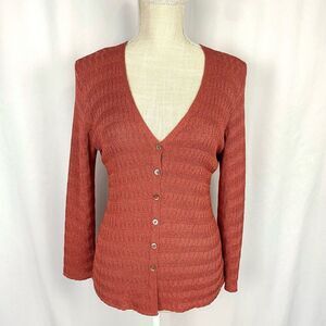 Sigrid Olsen Sport Women's Rose Coral Long Sleeve Button Front Cardigan Sweater