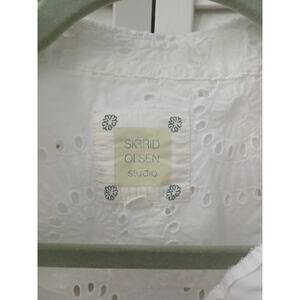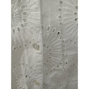 Sigrid Olsen Studio White Button Down Blouse Eyelet Lace 3/4 Ruffle Sleeve M