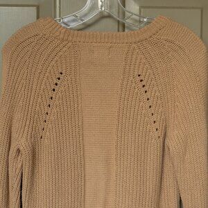 Sigrid Olsen Sweater Beige Cotton Camel Hair Rib Knit Crew Neck Minimal Pullover