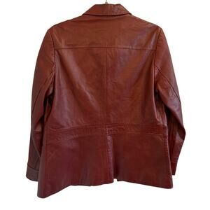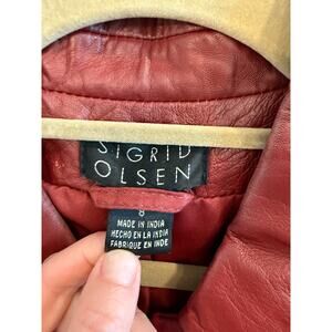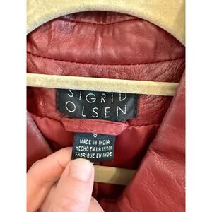 Sigrid Olsen Sz 8 Dark Red Leather Jacket Coat Fall 70s Retro Vibes VGUC, measurements in photos