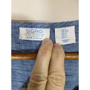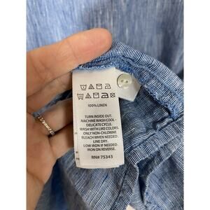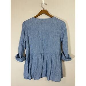 Sigrid Olsen Top Womens SMALL Blue 100% Linen Peplum Button Up Shirt Rollback
