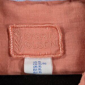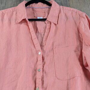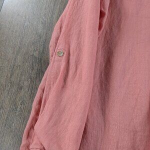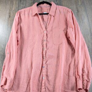 Sigrid Olsen Tunic Top Womens XL Pink 100% Linen Button Up Roll Tab Sleeve