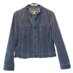 Sigrid Olsen Vintage Gray Brushed Cotton Beaded Collar Jacket Blazer