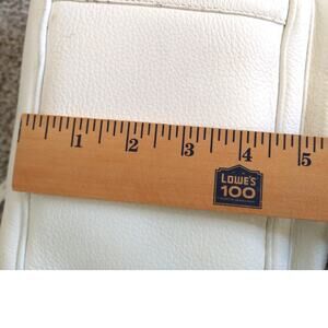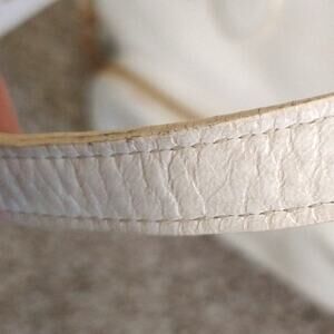 Chic and functional, this Sigrid Olsen white leather handbag features a soft, genuine leather exterior. The interior is lined in a light blue fabric and shows some wear with staining, but remains intact with no holes or structural damage. Ideal for daily use or as a vintage wardrobe piece. Comfortable shoulder straps and practical compartments make it both stylish and functional. Please refer to photos for condition.