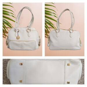 Sigrid Olsen handbag, white leather bag, vintage leather purse, pre-owned shoulder bag, women's everyday bag, classic white purse, structured leather tote, boho leather handbag