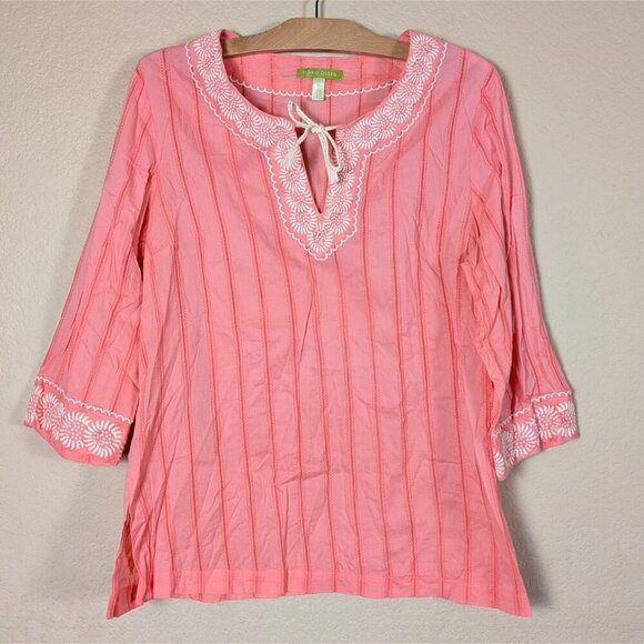 Sigrid Olsen Women's 100% Cotton Long Sleeve Top XL Embroidered Beachy Tassel