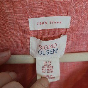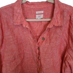 Sigrid Olsen Womens 2X Orange Linen Half Button Up Long Roll Tab Sleeves Shirt