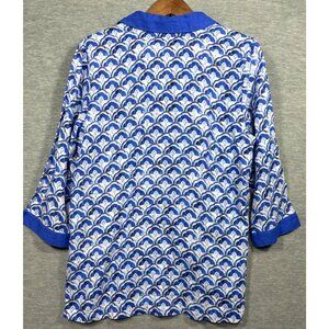 Crafted from a breathable linen blend, this Sigrid Olsen blouse features a striking scallop print. Its relaxed fit and 3/4 sleeves offer comfort.