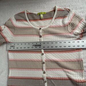 Sigrid Olsen Womens Button-Front Striped Cardigan Sweater Medium Lightweight