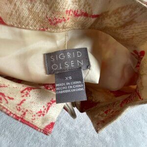 Sigrid Olsen Womens Floral 100% Linen Tunic Jacket Coat XS Red Beige Lightweight