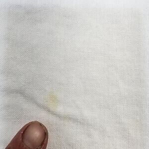 There is a very faint spot on the back of the left leg, no other rips or stains. See photos for details and measurements.
